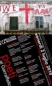 Un reading di poesia con l’intervento di musicisti, la proiezione di un’intervista a Edoardo Sanguineti realizzata da Ciprì e Maresco, la mostra “La Parola Fotografata” realizzata da Francesco Francaviglia sui poeti siciliani e la presenza di Radio Cento passi (erede di Radio aut di Peppino Impastato, ucciso dalla mafia per la sua irridente e creativa lotta contro i boss) venerdì 2 luglio dalle 20.30 in poi a Piazza Garraffello, fra le rovine della Vucciria di Palermo, ma senza la spazzatura che solitamente circonda e riempie la bella fontana cinquecentesca del luogo, perché faranno una pulizia straordinaria gli abitanti della zona. A fondale dello scenario, la scritta “Uwe ti ama”, tracciata sui muri sbrecciati dall’artista austriaco Uwe Jaentsch, che da anni opera nel luogo e vi ha realizzato interventi che, sottolineandone il degrado, al tempo stesso ne esprimono la potenzialità. L’iniziativa è di un gruppo di operatori culturali, che hanno messo assieme forze e volontà di fare e, a titolo gratuito e coinvolgendo il quartiere, ha già realizzato un evento simile per la Giornata mondiale della poesia in un altro sito palermitano, recentemente recuperato ma rimasto inutilizzato (il Comune non vi ha previsto nessuna attività, sebbene sia uno spazio ideale per eventi culturali), il giardino di Piazza Fonderia. Parteciperanno i poeti Roberto Deidier, Nino De Vita, Francesca Traina, Biagio Guerrera, Nicola Romano, Margherita Rimi, Mara Librizzi, Luciano Mazziotta, Sebastiano Adernò, Giovanni Catalano, Francesco Balsamo, Francesca Pellegrino. Quelli di loro che non vivono a Palermo, verranno a loro spese, nello spirito della manifestazione, senza finanziamenti e senza scopi di lucro, testimonianza di indignazione attiva per l’incuria e la rovina che condannano a morte luoghi ricchi di storia e di arte e di fiducia nel potere delle parole e della bellezza.