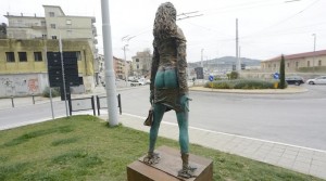 In fondo è arte ed è anche possibile che Courbet e l’ignoto scalpellino della chiesetta di Corsignano (SI) non abbiano insegnato nulla e ancora, appunto nel 2013 la rappresentazione della femminilità, che dovrebbe quindi riportarci immediatamente alla naturalità di un’ identità esistente resti sottesa allo stereotipo della malizia e del vedo e non vedo. In un’epoca in cui “tette e culi” rappresentano il biglietto da visita e l’accesso alla carriera, che resta allora a ricordarci l’idea della violazione? I vestiti strappati? L’immancabile borsetta ancora stretta nella mano stile “die with your boots on”, oggetto che strizza l’occhio alla retorica del martire guerriero, alla stampella di un Toti, pronta per essere scagliata contro l’oppressore? Furbescamente e non a caso ci raccontano che in realtà il messaggio (ma allora è pubblicità, non Arte), della statua sia la rappresentazione della dignità e della fierezza della donna violentata che si rialza. Ma allora, non solo cade, sprofonda, si sotterra la minima ambizione ad essere opera d’arte, nel momento in cui il messaggio immediato, banale, oggettuale, mi viene raccontato e soprattutto imposto a giustificare un atto simile. Ma poi, si cade definitivamente nel retorico, perchè da parte di un’amministrazione comunale non c’è nulla di più ipocrita, nulla di più retorico, nulla di più consolatorio che la “rappresentazione” sociale e politica della dignità e della fierezza. Niente di più rassicurante per una società, culturalmente artefice e responsabile di un atto così iniquo, che il vedere una donna “violata” rialzarsi nella solitudine più totale e girarsi per ricominciare. Niente di più rassicurante che mettere la violenza sulla donna alla stregua di una sfiga capitata alla poveretta di turno invece di avere il coraggio (e se l’arte non ha coraggio, che arte è?) di porre l’accento sul dramma sociale e quindi cittadino che ciò rappresenta. Una notte qualcuno ha posto simbolicamente un accappatoio; tacciato sul quotidiano locale come atto di censura (il riferimento al mutandaggio censoreo su Michelangelo risulta esilarante) in realtà si è voluto spostare retoricamente di nuovo, svilendo (ma guarda…) il senso di un gesto a mio parere assolutamente artistico, azione situazionista di rispetto nei confronti di chi aveva subito una tale violenza e che non si è rialzata per “merito” di una città e che anzi adesso si trova costretta ad interfacciarsi quotidianamente con la stessa “lacerazione e solitudine”. Io la statua l’ho vista e dopo una trista visita alla Mole vanvitelliana, capolavoro dell’architettura italiana, pochi metri più avanti. Viste le condizioni in cui versa, forse sarebbe meglio cominciare a recuperare altrove la dignità della città, recuperando spazi utili alla socialità alla conoscenza reciproca, alla cultura, uniche “terapie” verso un male che è sociale e non casuale.