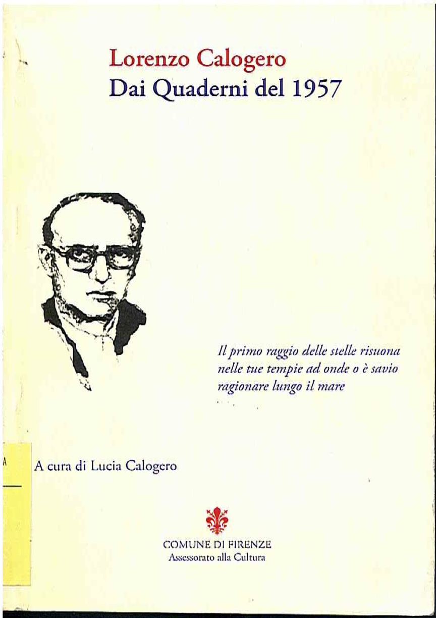 Frammenti tratti dai quaderni manoscritti inediti risalenti al 1957 trascritti e curati dalla nipote del poeta Lucia Calogero in Lorenzo Calogero, Dai quaderni del ’57, stampati in 500 copie numerate dall’Assessorato alla Cultura del Comune di Firenze.