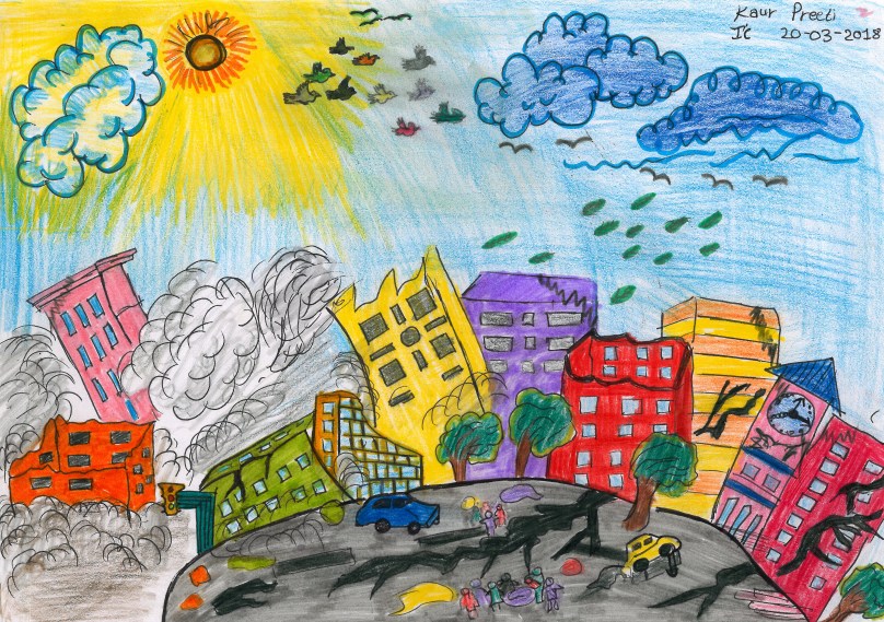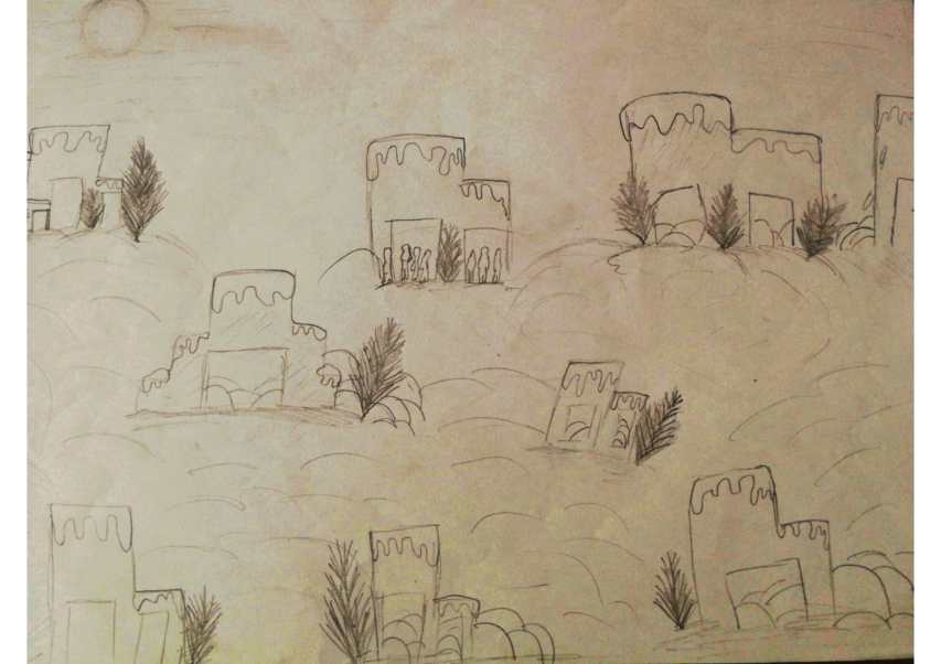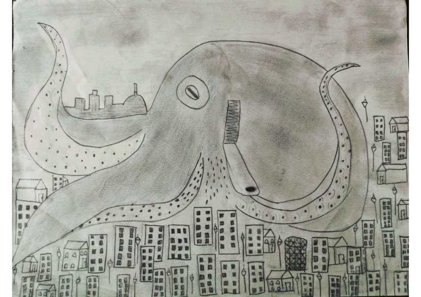Ricorrendo il cinquantesimo anniversario dal terremoto del Belice, mi è capitato in più occasioni di parlarne nelle classi dove insegno quest’anno, alla scuola media Bonfiglio di Palermo. L’ho fatto con insistenza non solo perché sento vicini quei fatti anche per ragioni familiari, ma soprattutto perché mi sembrava una storia capace di coinvolgere i bambini, con la forza delle immagini di allora e di adesso. In particolare avrebbe potuto impressionarli la vicenda di Gibellina, l’idea di ricostruire attraverso l’arte e la cultura quello che la natura aveva distrutto: una scintilla utopica che resiste anche all’interno di un’attualità un poco trasandata. Da lì mi è capitato di proporre alcune parti di un bellissimo libro uscito alcuni anni fa, il poema Ruggine di Marilena Renda (Dot.com Press, 2012), che raccontava proprio quella tragedia in modo ipermetaforico, allucinato, potentissimo. Anche se si tratta di una poesia difficile per alunni così piccoli, mi accorgevo leggendo insieme a loro che alcune immagini si prestavano a uno slittamento di codice, al passaggio dalle parole ai disegni. Così, dopo aver affidato per una prima ricognizione una copia del testo a un’alunna di terza, Giada Di Giovanni, dotata di un naturale olfatto metaforico, è cominciata la ricerca puntuale di versi che potessero diventare illustrazione. Va da sé che il talento per il disegno di alcuni, soprattutto (e forse non per caso) ragazze, mi precedeva, ma posso dire che tutti, anche nell’ingenuità della resa, sono sempre riusciti a cogliere il senso del testo, interpretandolo e magari allargandolo. Al netto di qualche inevitabile incongruenza, sono venuti fuori disegni talvolta molto raffinati (come nel caso di Giulia Alessandra, che a scuola è da tempo un’artista molto richiesta), a volte più semplici, ma decisamente efficaci (una ragazza Emma sinistra e sonnambula; un cartello di Stop a segnalare l’attesa e la sospensione…). È stata colta bene la natura della metafora, come per la casa che si prolunga in pavone, o la città che avvolge e soverchia come un’immensa piovra (due quadri bellissimi, che sembrano di matrice onirica, surrealista), o ancora la casa-nave secondo Melissa Ramirez, che immagina un ponte sospeso in cielo. Ma ogni disegno qui pubblicato ha qualcosa di profondamente coerente e addirittura illuminante rispetto alla porzione di testo da cui è nato. Questo piccolo laboratorio dimostra forse che c’è spazio fin dai gradi scolastici inferiori per uno studio della poesia più coraggioso e attuale; che le parole respingono finché non impariamo anche a giocarci e a seguirne le traiettorie più sorprendenti.