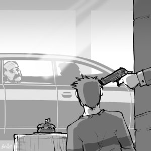 L’autista scese velocemente dalla macchina, aprì lo sportello sul retro e appoggiò davanti a Raffaele un tavolinetto pieghevole, di quelli da pic-nic. Poi tornò indietro a recuperare una scatoletta di cartone e un piatto di plastica. Estrasse dalla scatoletta di cartone un hamburger malandato, comprato di sicuro un’oretta prima al fast-food più vicino, e lo mise sul piatto. Gettò la scatoletta vuota sul pavimento nel garage, senza curarsi del fatto che lì a due metri c’era un cestino per l’immondizia. Tirò fuori dalla tasca un coltello e una forchetta di plastica. Li mise sul tavolino vicino all’hamburger. Poi si voltò e tornò a sedersi in macchina, sul sedile del conducente, dove se n’era stato silenzioso e immobile fino a quel momento.