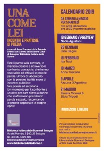 UNA COME LEI incontri e pratiche di poesia è un progetto a cura di Anna Franceschini e Roberta Sireno con Biblioteca Italiana delle Donne di Bologna/Centro delle Donne di Bologna.