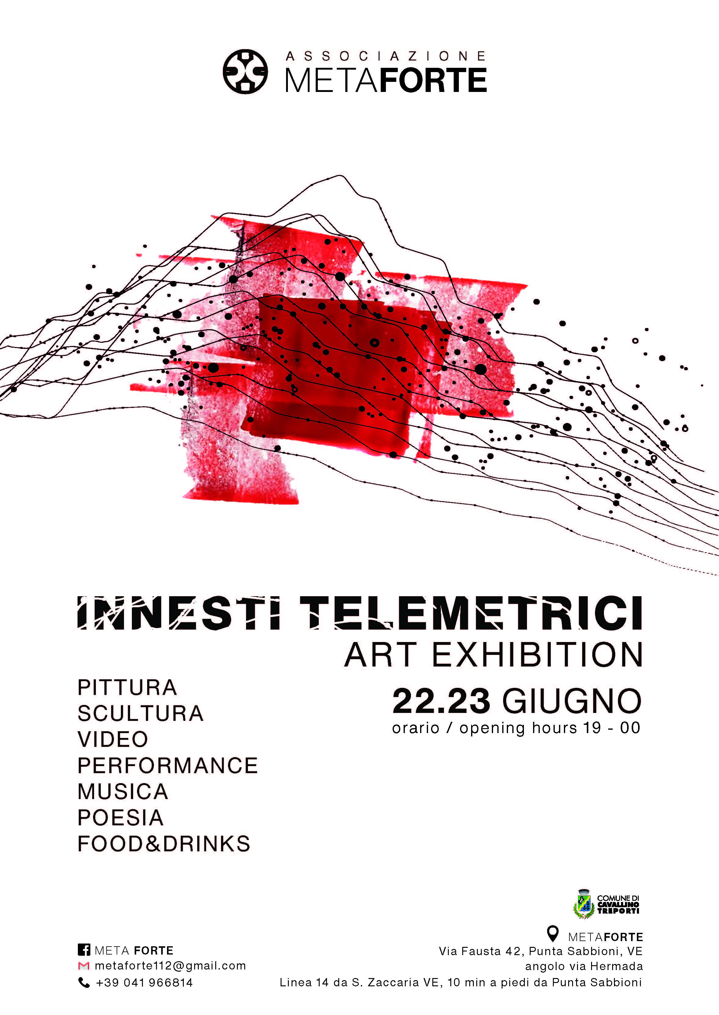 Dal 22 al 23 giugno a Cavallino-Treporti, provincia di Venezia, l’Associazione Metaforte organizza un Art Exhibition dal titolo “INNESTI TELEMETRICI“. L’evento vedrà la partecipazione di artisti che spazieranno tra le diverse discipline artistiche quali pittura, scultura, fotografia, video-installazioni, performance, land art…