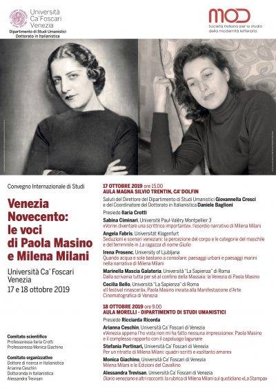 Scarica la locandina: Locandina Venezia Novecento_Convegno Internazionale le voci di Paola Masino e Milena Milani