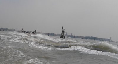 Ecco cos’erano quelle onde, quelle sciabolate d’acqua che colpivano i fianchi cocciuti della solida imbarcazione adibita a trasporto pubblico. I sommovimenti schiumanti che continuamente increspavano i canali da decenni preda della confusione, ecco cos’erano.