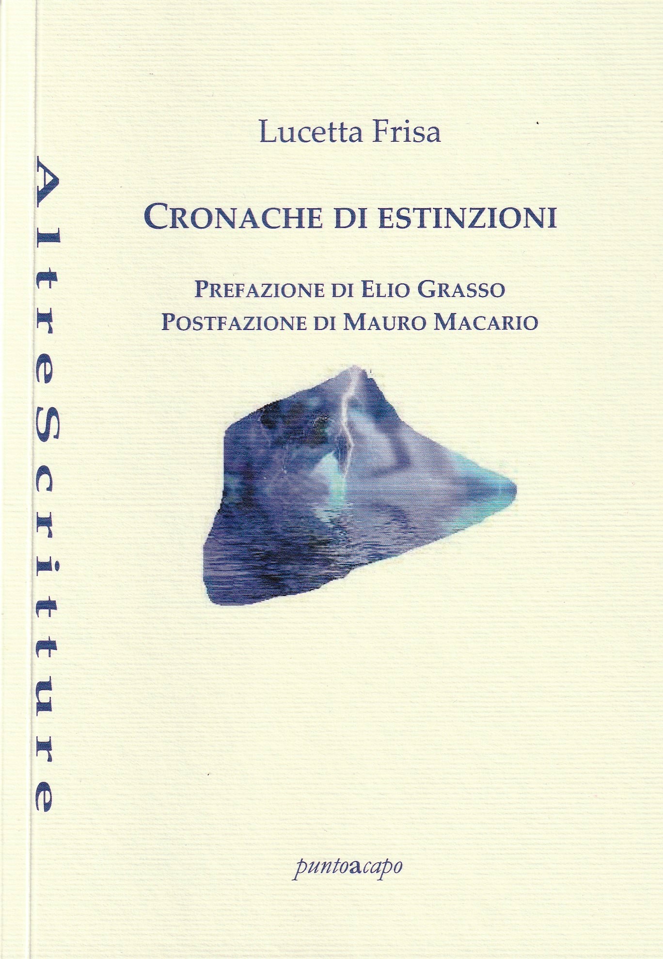 Cronache di estinzioni (puntoacapo Editrice, 2020), la raccolta più recente di Lucetta Frisa, permette a chi legge di addentrarsi nel mondo della sua scrittura e di seguirne il filo conduttore nel suo dettato dalla sonorità molto originale e, ora, in una versione inedita per la sua determinazione a ‘schiaffeggiare’, nella sua corrucciata evoluzione.