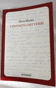 Questa nuova raccolta poetica di Piera Mattei (editrice, poetessa, traduttrice) si compone di sette sezioni e di un’appendice. I titoli delle sezioni (I verbi all’infinito, Io, ha senso?, Scrivendone s’attenua, Il suono delle parole, La curva dell’oblio, La natura in sé, Lo spazio) indicano già l’ampio spettro tematico della raccolta, che declina le modalità del rapporto io-mondo e della sofferta interazione tra le parole e le cose. La prima sezione, I verbi all’infinito, che si ricollega in modo speculare al titolo della raccolta, si sofferma sulla distanza tra le potenzialità del verbo, nel suo dispiegarsi all’infinito, in funzione imperativa e ordinativa, e la resistenza del mondo e degli oggetti all’ordine imposto dal linguaggio. Si legga questa memorabile quartina, compresa nel sonetto L’autonomia degli oggetti: «Piccoli gesti nello spazio concluso/ quelli solo puoi compiere/ provare inutilmente a riordinare gli oggetti nella casa».