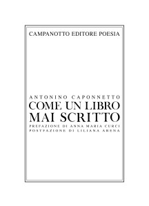 La similitudine che dà il titolo alla raccolta di Antonino Caponnetto, Come un libro mai scritto, assume la misura di un settenario e prelude a un percorso breve – trentacinque testi – e, tuttavia, molto ricco per le direttrici disegnate e per le prospettive che vengono di volta in volta intuite, schiuse, quando non addirittura messe a nudo. L’introduzione a questo libro seguirà dunque un itinerario per direttrici e per prospettive.