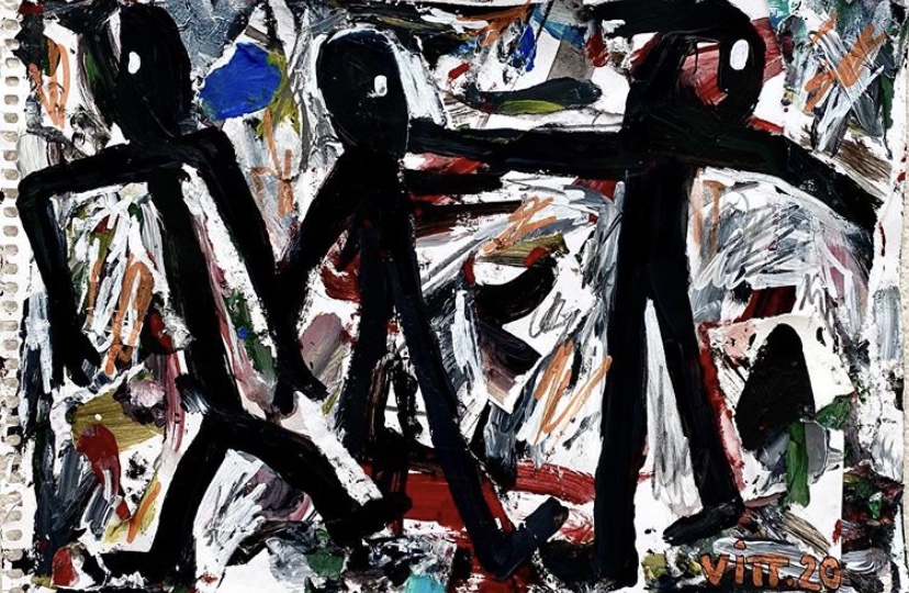 Veniamo alla pittura. Nei tuoi quadri spicca il giocoso e un senso di movimento vivo e pulsante. La potenza del colore e del tratto ha a che vedere, metaforicamente, con un’altra tua grande passione, la musica, il sassofono?