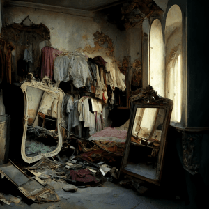 Room 16 + Midjourney : In room 16, mirrors and rags abound.