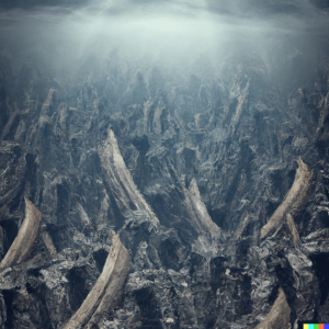 Tutti raggomitolati, come ciottoli, detriti, quelle montagne franate dalle navigazioni Mhyr, sgorgavano via guardando il suo cranio zuppo, in un cangiante e mormorante plotone di cartapesta.