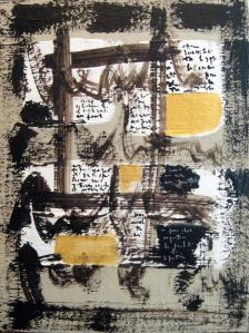 In una delle sue mostre d’esordio come pittore, Nel fuoco della scrittura del 2009, lei affermò, “In queste opere osservo le parole dal di fuori, private del loro significato”. Non a caso i suoi primi dipinti accolgono e rielaborano visivamente la traccia della parola e del testo. In che modo si è fatta spazio in lei, dopo trent’anni di attività come poeta, l’esigenza di sincronizzare arte verbale e figurale?