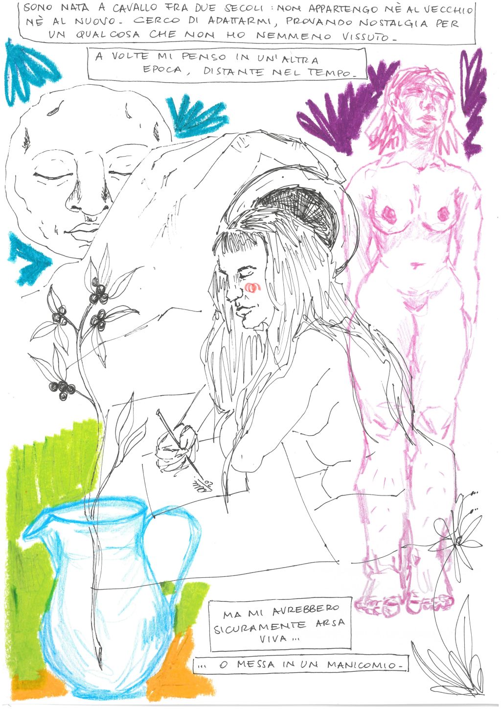 Sono nata a cavallo fra due secoli: non appartengo né al vecchio né al nuovo. Cerco di adattarmi, provando nostalgia per un qualcosa che non ho nemmeno vissuto.