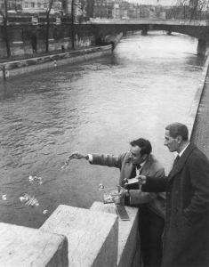 Non è finita ancora: collaboratore e amico di Yves Klein, lo scrittore Dino Buzzati partecipa a queste performance di cessione del vuoto (a testimoniarlo, una bella foto scattata a Parigi nel 1962, dove sul Pont-au-Double Klein sta gettando nella Senna foglia d’oro, aiutato da Buzzati).