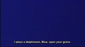 E parlando di Blue Klein e di Rita da Cascia, il pensiero non può che toccare Blue, il commovente film estremo di Derek Jarman, realizzato da quasi cieco, quando un’infezione causata dall’AIDS gli permetteva di vedere soltanto in toni di blu. Il film è un unico fotogramma vuoto, di colore blu, mentre il sonoro straborda l’ironia e la furia lieve della voce debole del regista, che consegna al cinema il proprio ultimo lancinante sguardo sul vuoto. Il film è dedicato da Jarman a Santa Rita da Cascia.